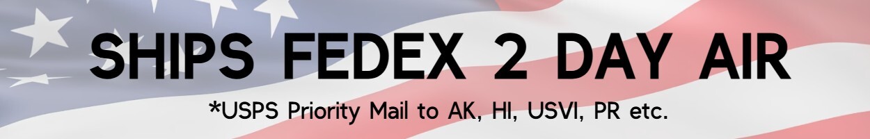 - Ships FedEx 2 Day Air for $10/ea, USPS to AK, HI, USVI, PR etc.